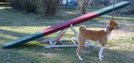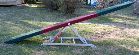 An excellent compact size seesaw for home use and general training purposes. This seesaw is a 2/3 down scaled, yet still a highly stable version of the official seesaw. This obstacle fits in smaller training environments as the length of the swing is just 2,35 meters and the height of the center is 0,4 meters. While it weights no more than 18 kilos, the Agimet Mini Seesaw is still easy to carry.