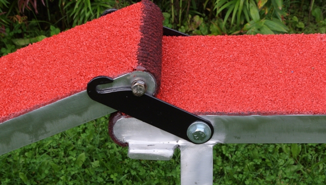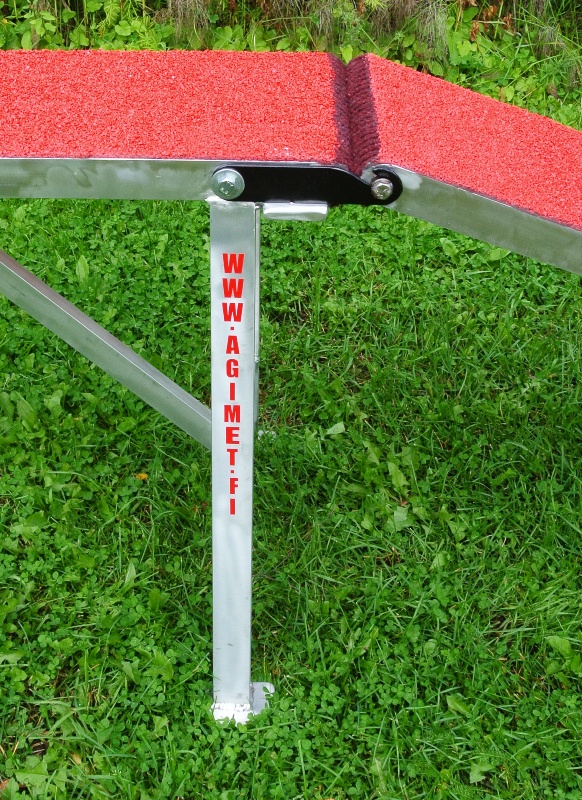 This obstacle features Agimet super safe quick-lock ramp fasteners that make sure the ramps are attached tight with a minimal gap even if the ground isn't completely flat. Quick-lock ramps are also fast and easy to attach and release also when operated by one user.