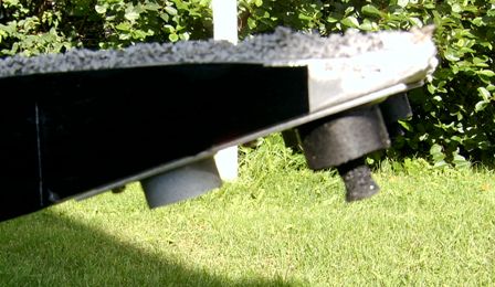 The surface material can be selected between a durable and easy-care rubber granule coating (see pictures) and the also durable carpet. Seesaw is equipped with ball bearing and adjustable counter weight that enables adjustment of the descent speed.